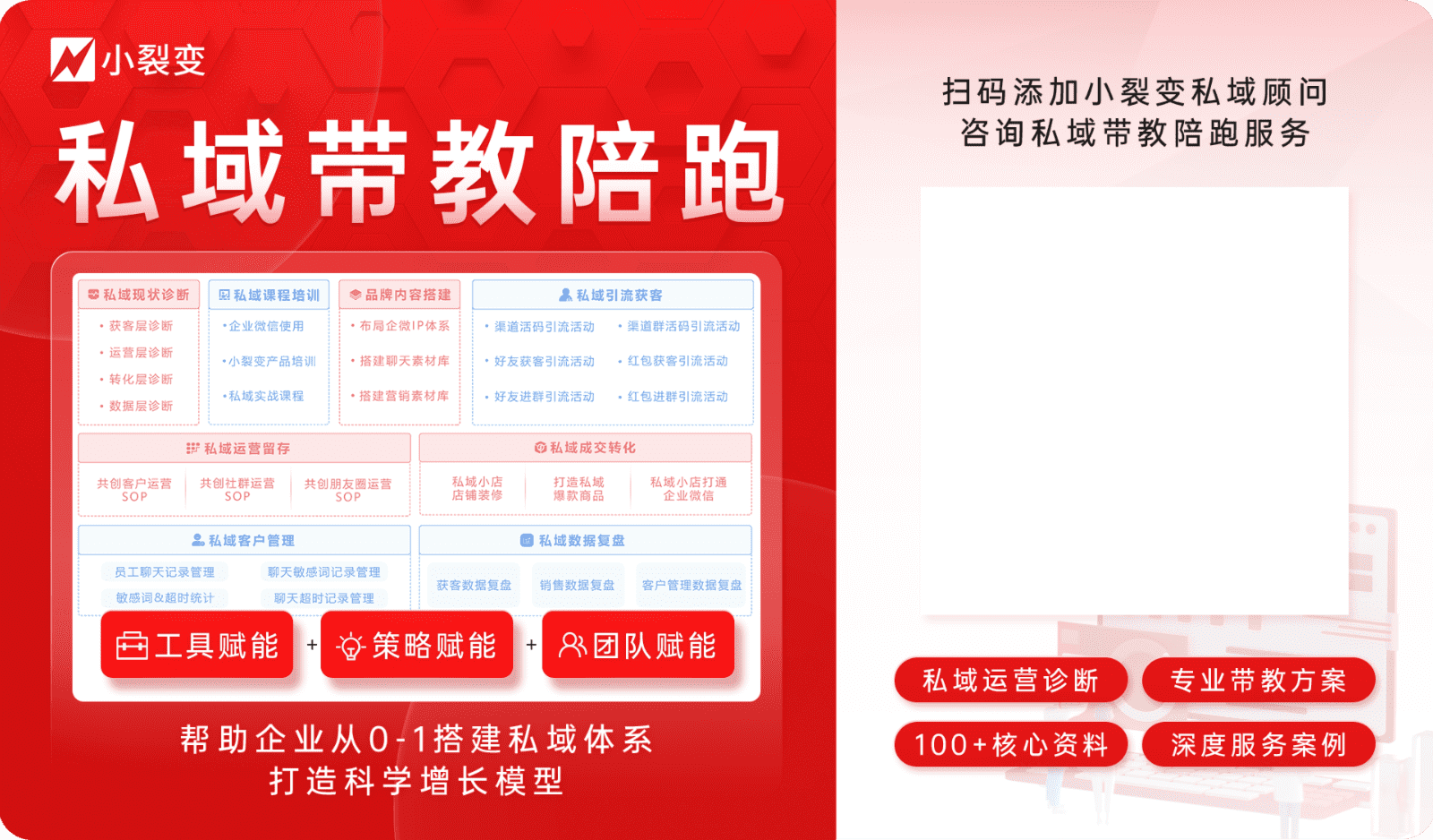 企业微信私域运营神器,覆盖「引流获客-运营留存-客户管理」等场景,帮助企业搭建私域运营闭环体系
